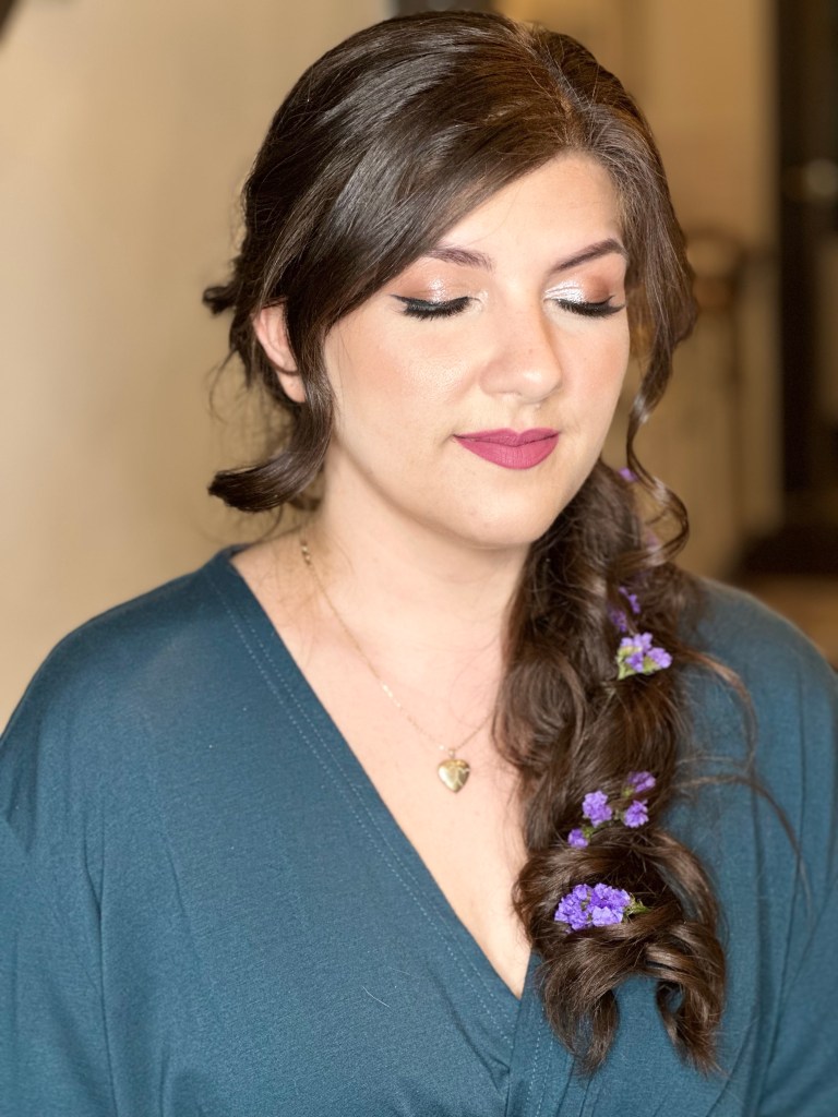 – Dry run (trials) makeup appointment & specialty hairstyle appointment at least 2 hours in length, but could run longer, depending on how many looks we try. (Recommended for wedding-related events, such as engagement photos, wedding showers, bachelorette parties, etc.). Additional fee will apply after the first 2 hours.